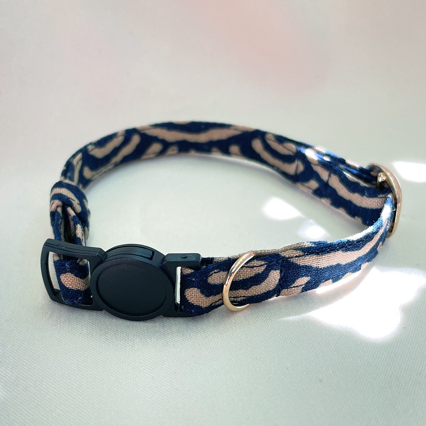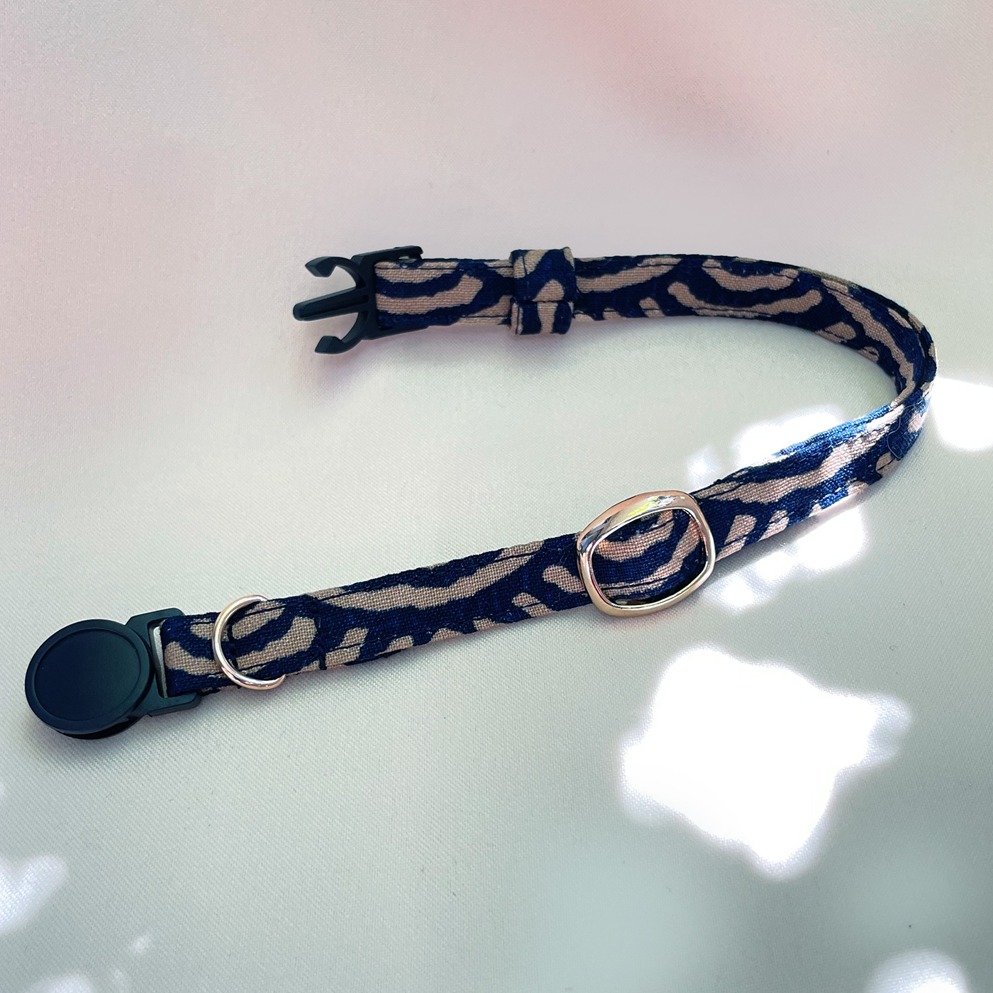 ネコちゃん用の首輪にはセーフティーバックルを使用しています。ある程度の力がかかると自動的にバックルが外れる仕様となっています。