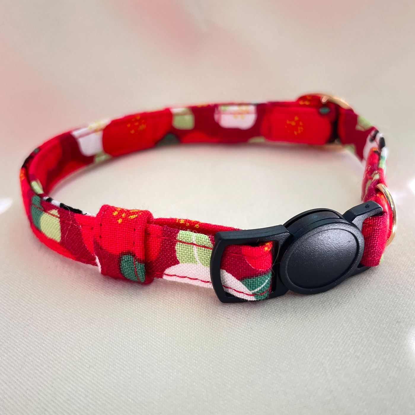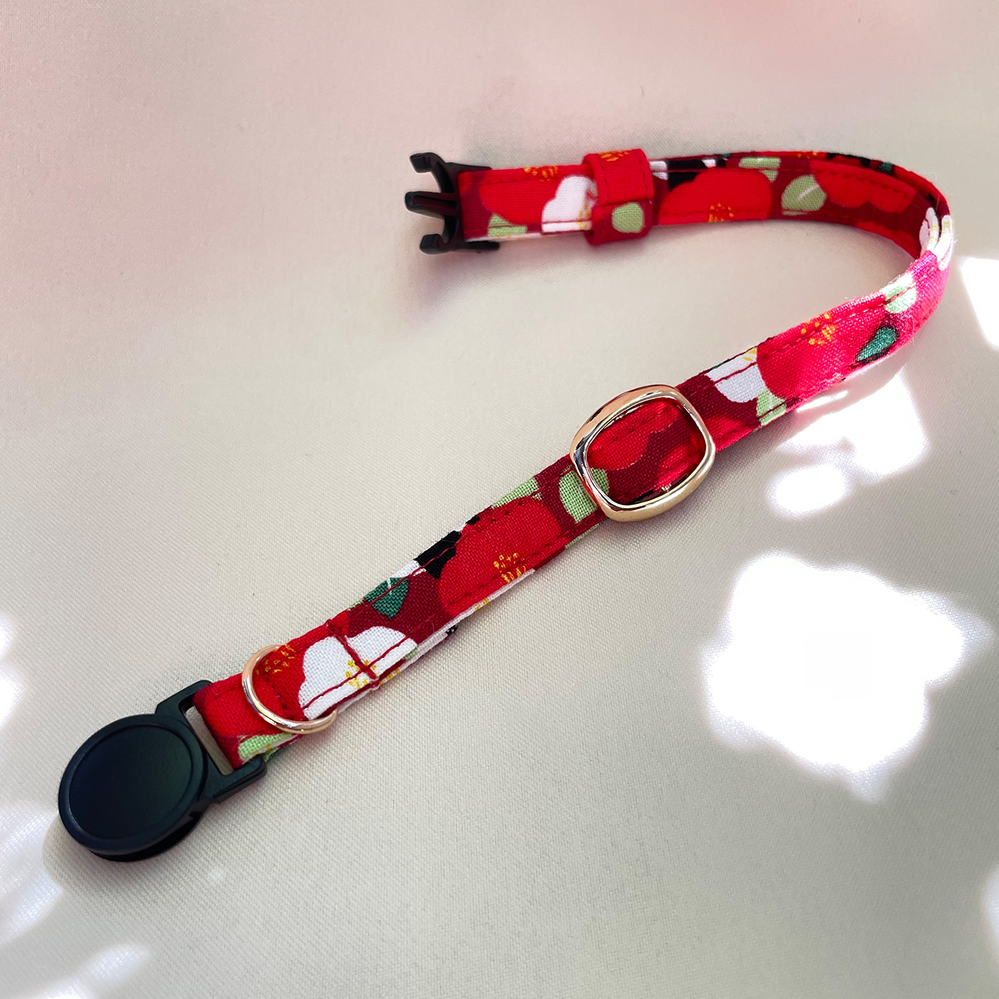 ネコちゃん用の首輪にはセーフティーバックルを使用しています。ある程度の力がかかると自動的にバックルが外れる仕様となっています。