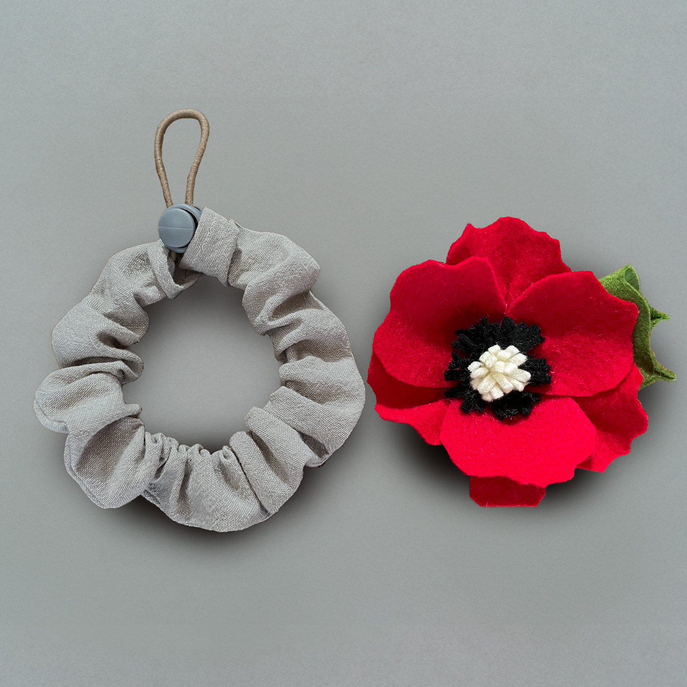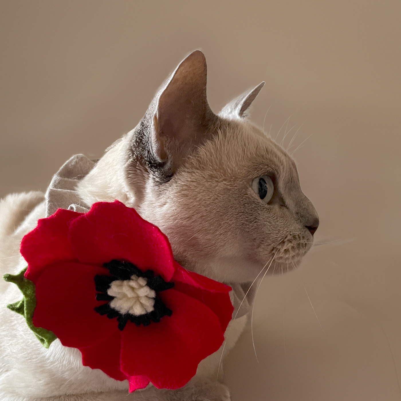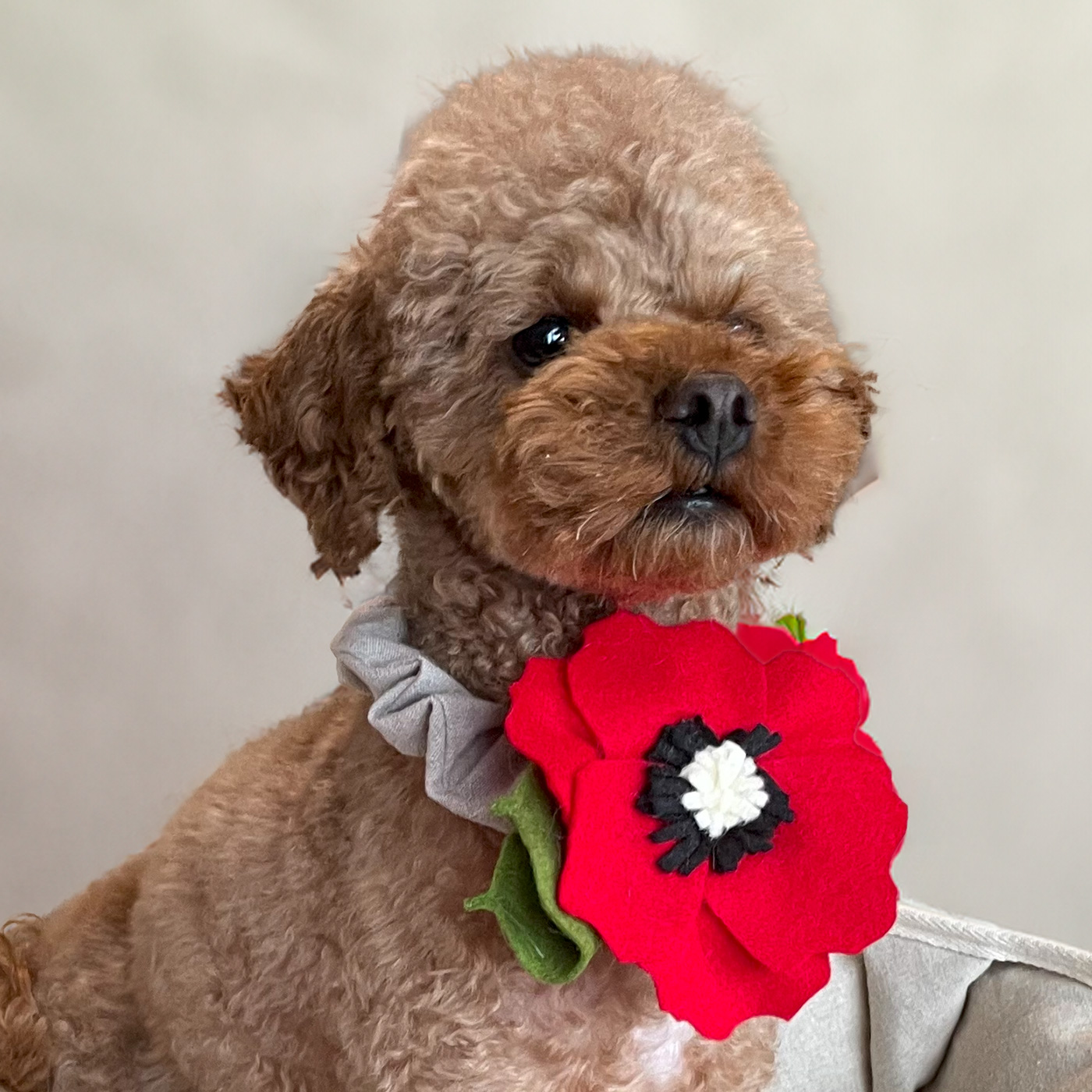 シュシュ首輪 取り外しモチーフ付き(お花/レッド)