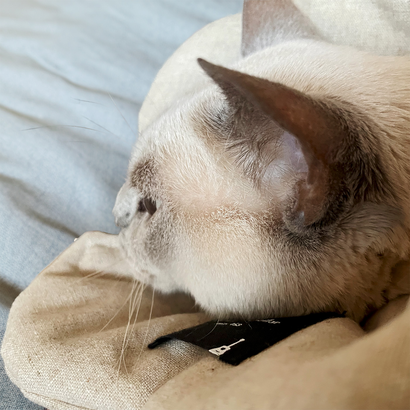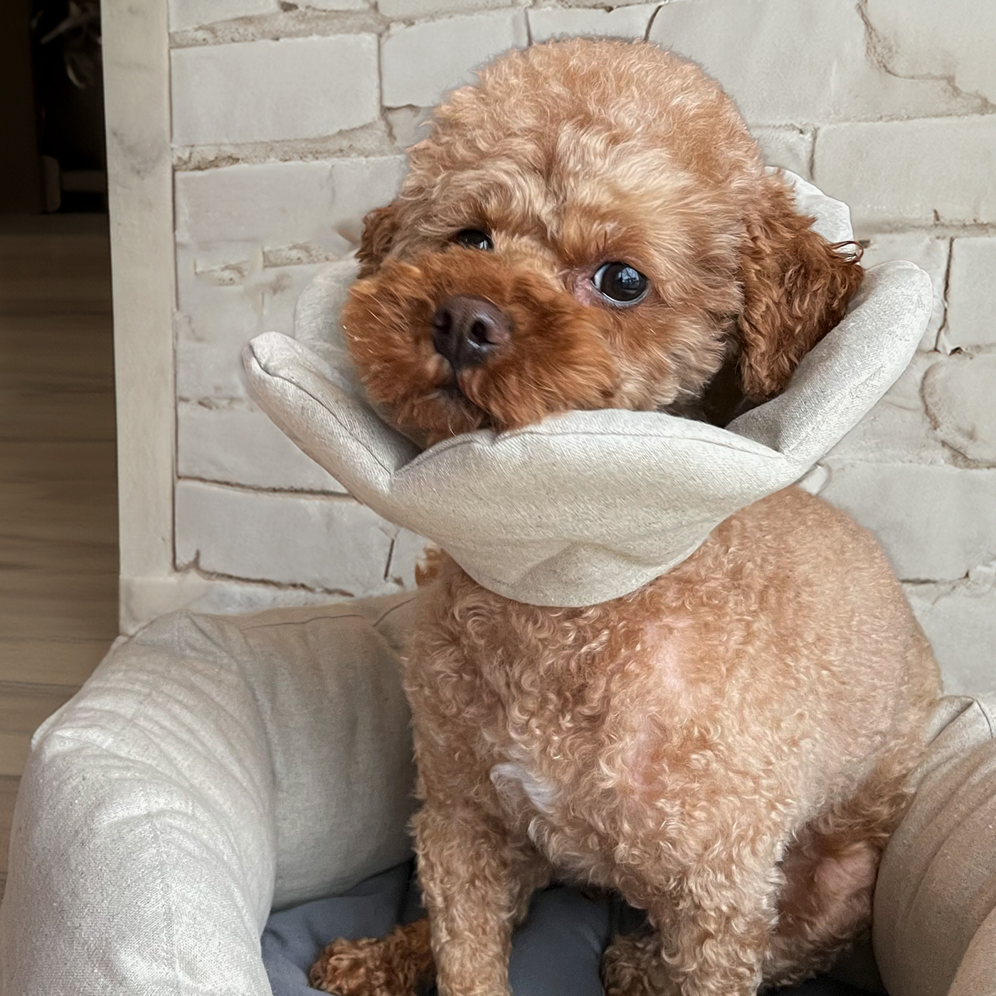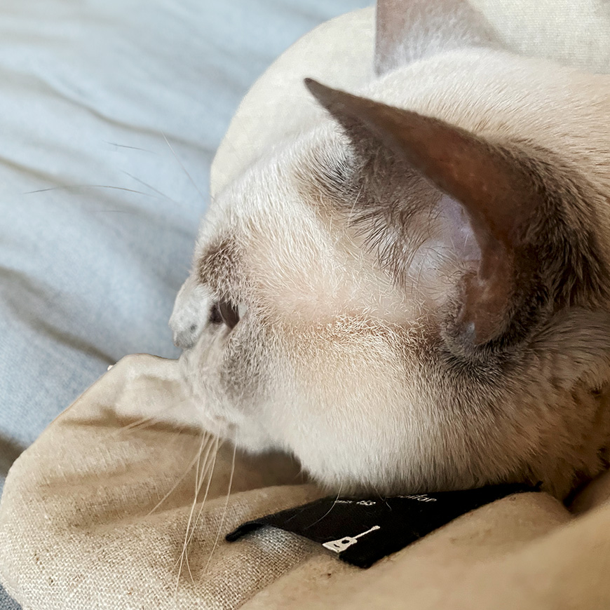 プラスティック製は首周りにあたってると痛そうですが、布製のエリザベスカラーは形状が変化するのでどんな格好でも負担が少なく思えます。