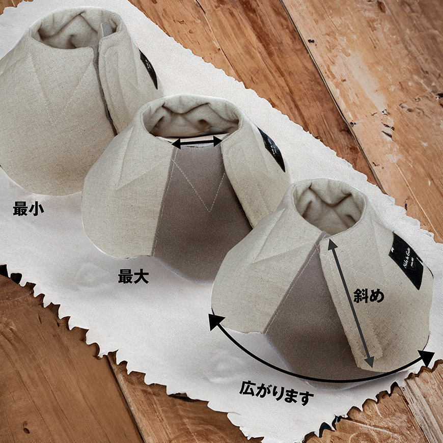 グレーの別布部分でマジックテープがくっつきますので幅広いサイズ調整が可能です。