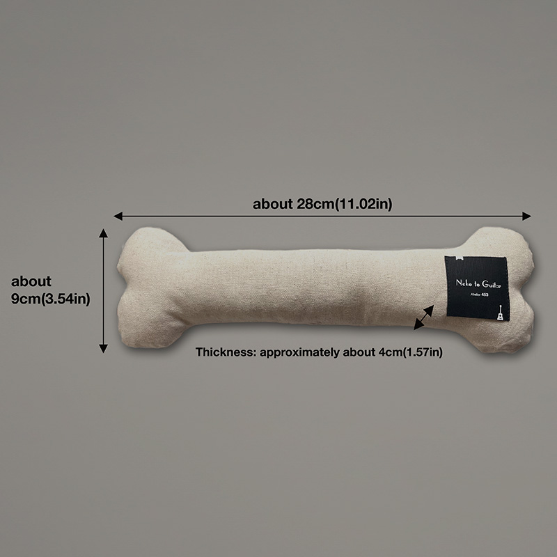 One side features soft cotton-linen material, while the other side is hand-knitted in a playful bone shape.