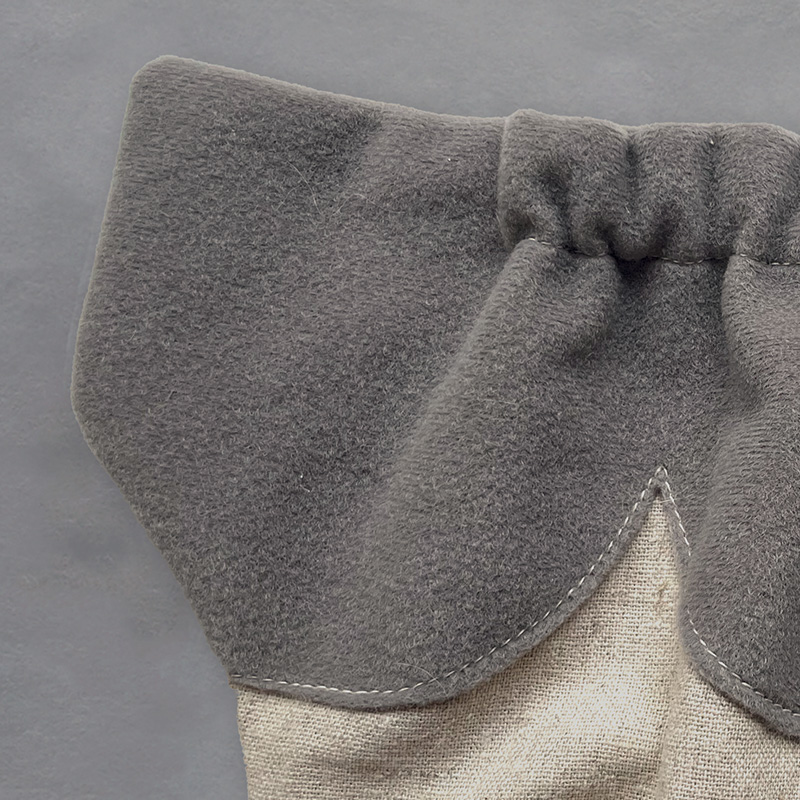 デザインにもなっているスカラップの別布(グレーの布)はマジックテープがくっつく素材。